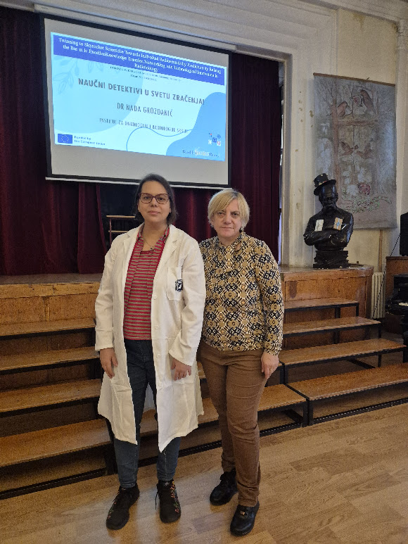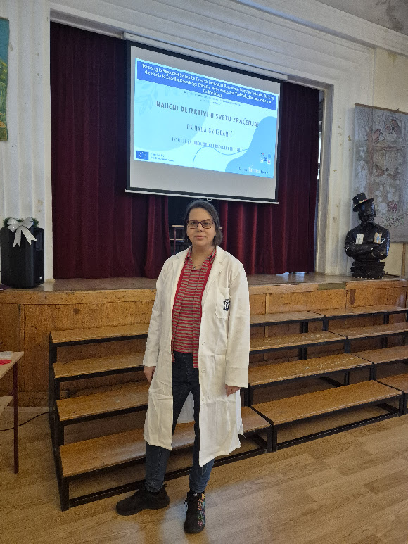 The team organized an incredible “Science Detectives in the World of Radiation!” class in the school ceremonial hall, led by Dr. Nađa Grozdanić (IORS), and the Interactive Learning part led by Dr. Ivana Matić and Dr. Tatjana Stanojković. Nađa, Tatjana, and Ivana were on hand to guide the scholars through the hands-on experiments and demonstrations.