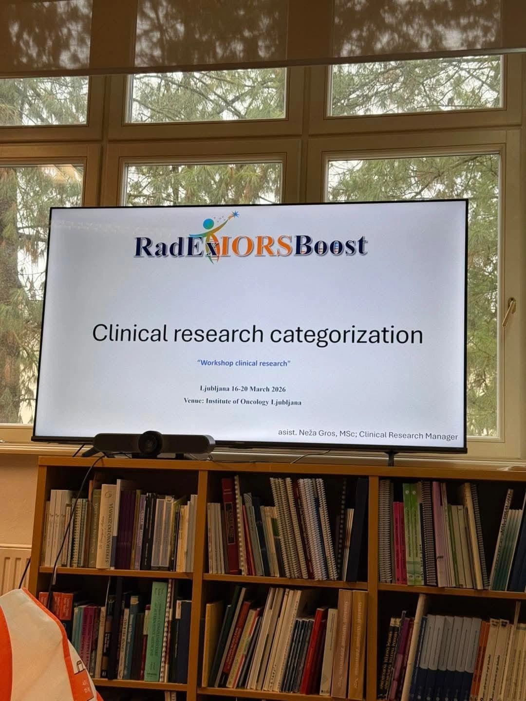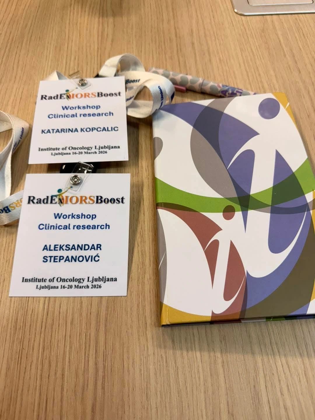 Radiation oncologists Asst. Prof. Aleksandar Stepanović, MD, PhD, and Katarina Kopčalić, MD, PhD, Research Associate, members of the RadExIORSBoost project team, successfully completed the Workshop on Clinical Research at the Institute of Oncology Ljubljana, as a part of their short-term training visit from 16 March to 20 March 2026. The workshop provided practical knowledge on clinical research fundamentals, including clinical study design, protocol development, and key ethical and regulatory principles such as Good Clinical Practice and data protection.